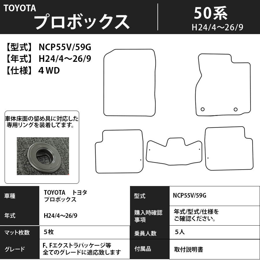 フロアマット トヨタ TOYOTA プロボックス PROBOX 50系 H14/7~H26/9 カーマット 抗菌 抗ウイルス 消臭 エコノミータイプ